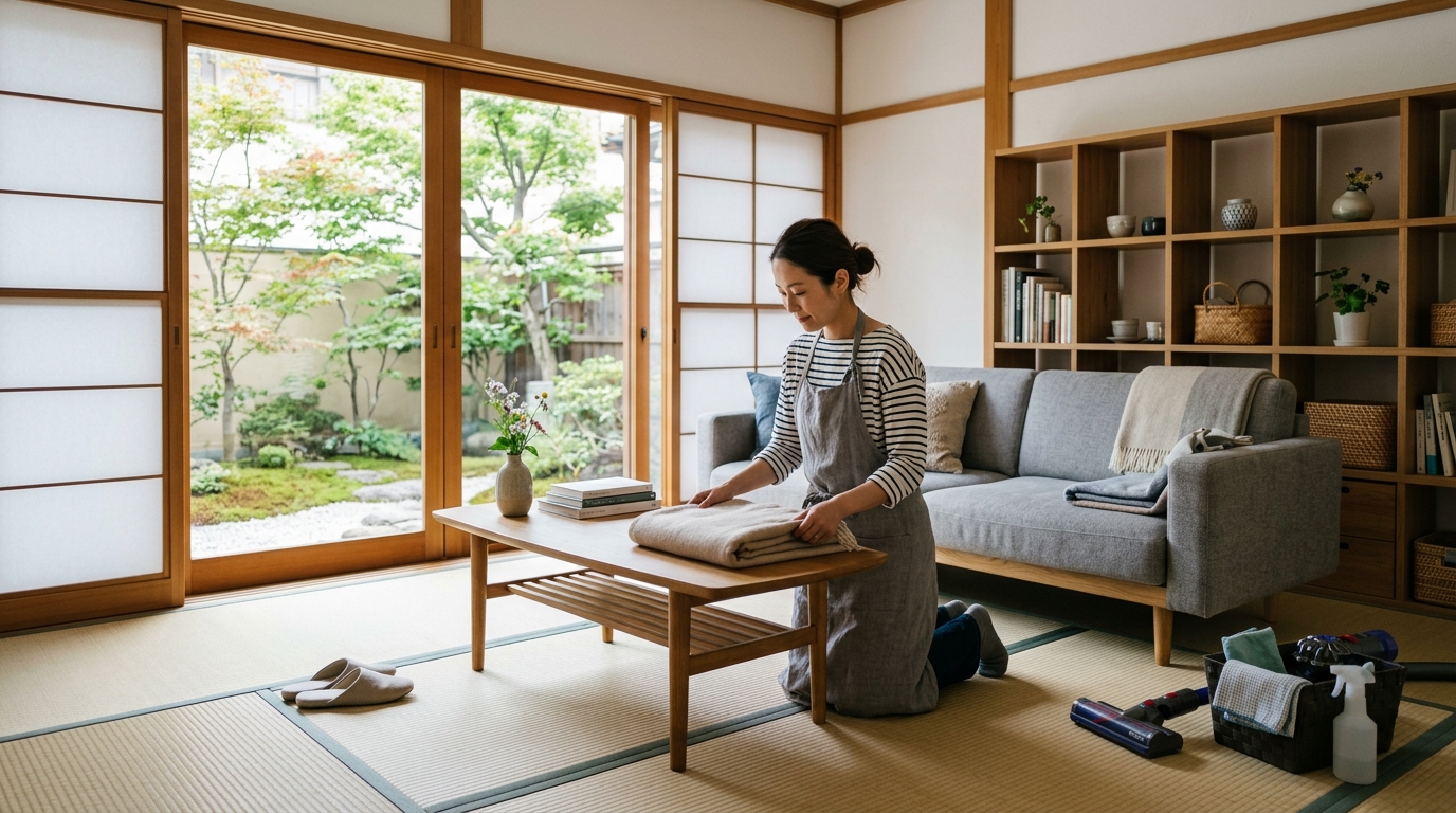 まず確認すべきは室内の整理整頓です。前日までにある程度整えていたとしても、当日の朝には生活の中で物が動いていることが多いため、再度全体を見直す必要があります。特にリビングやキッチンは滞在時間が長く、細かな部分まで見られるため、テーブルの上やシンク周りはできる限りシンプルな状態にしておくことが望ましいでしょう。