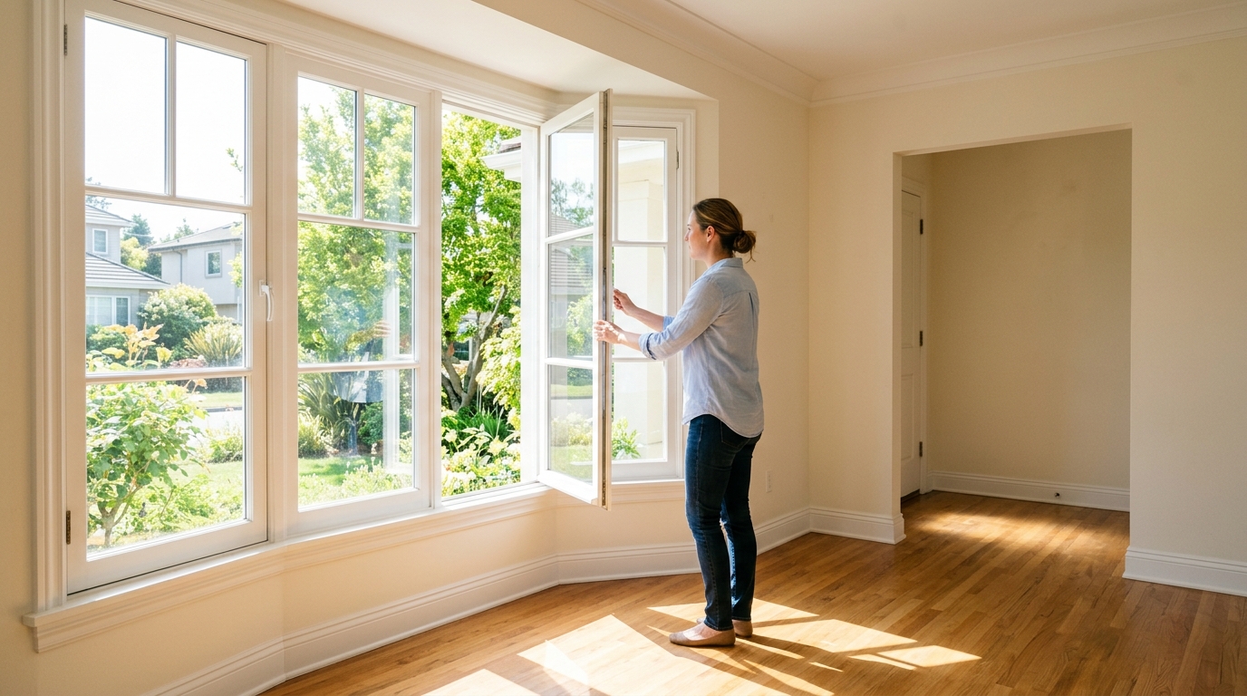 次に重要なのが換気です。内覧の30分〜1時間前には窓を開け、空気の入れ替えを行います。福岡のように湿度の高い地域では、空気のこもりやにおいが印象に影響しやすいため、この工程は特に重要です。エアコンの稼働も含め、快適な室温を保つことも忘れてはいけません。