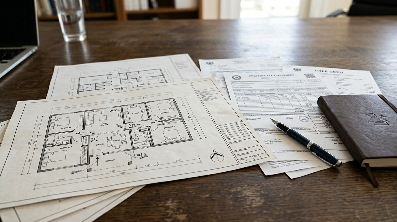代表的なものとしては、登記簿謄本(全部事項証明書)、購入時の売買契約書、間取り図、固定資産税納税通知書などがあります。特に土地や戸建の場合は、境界に関する資料や測量図があるかどうかも重要です。境界が不明確な場合、売却時にトラブルや追加費用が発生する可能性があるため、査定段階で把握しておくことが望ましいです。